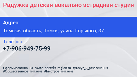 Радужка, детская вокально-эстрадная студия по адресу Томская область, Томск, улица Горького, 37 в дальнейшем Организация, размещена в следующих категориях: