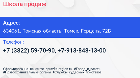 Школа продаж по адресу 634061, Томская область, Томск, Герцена, 72Б в дальнейшем Организация, размещена в следующих категориях: