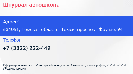 Штурвал, автошкола по адресу 634061, Томская область, Томск, проспект Фрунзе, 94 в дальнейшем Организация, размещена в следующих категориях: