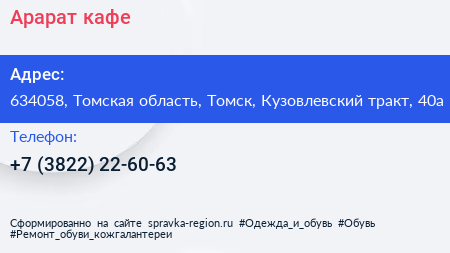 Арарат, кафе по адресу 634058, Томская область, Томск, Кузовлевский тракт, 40а в дальнейшем Организация, размещена в следующих категориях:
