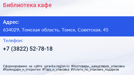 Библиотека, кафе по адресу 634029, Томская область, Томск, Советская, 45 в дальнейшем Организация, размещена в следующих категориях:
