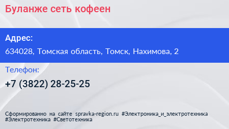 Буланже, сеть кофеен по адресу 634028, Томская область, Томск, Нахимова, 2 в дальнейшем Организация, размещена в следующих категориях:
