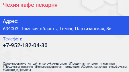 Чехия, кафе-пекарня по адресу 634003, Томская область, Томск, Партизанская, 8в в дальнейшем Организация, размещена в следующих категориях: