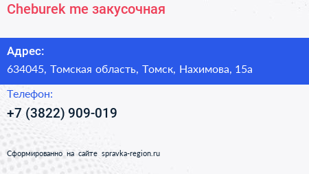Cheburek.me, закусочная по адресу 634045, Томская область, Томск, Нахимова, 15а в дальнейшем Организация, размещена в следующих категориях: