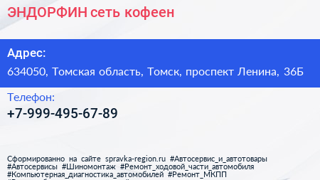 ЭНДОРФИН, сеть кофеен по адресу 634050, Томская область, Томск, проспект Ленина, 36Б в дальнейшем Организация, размещена в следующих категориях: