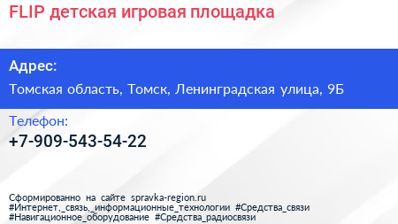 FLIP, детская игровая площадка по адресу Томская область, Томск, Ленинградская улица, 9Б в дальнейшем Организация, размещена в следующих категориях: