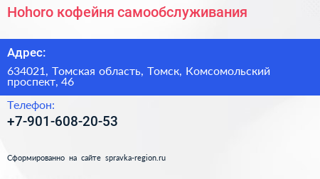 Hohoro, кофейня самообслуживания по адресу 634021, Томская область, Томск, Комсомольский проспект, 46 в дальнейшем Организация, размещена в следующих категориях: