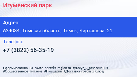 Игуменский, парк по адресу 634034, Томская область, Томск, Карташова, 21 в дальнейшем Организация, размещена в следующих категориях: