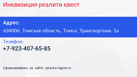 Инквизиция, реалити-квест по адресу 634006, Томская область, Томск, Транспортная, 1а в дальнейшем Организация, размещена в следующих категориях: