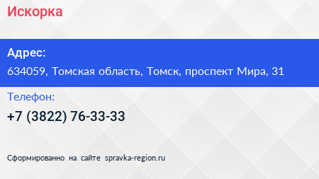 Искорка по адресу 634059, Томская область, Томск, проспект Мира, 31 в дальнейшем Организация, размещена в следующих категориях: