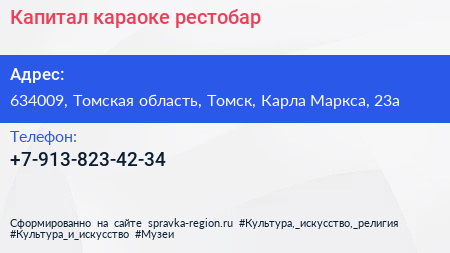 Капитал, караоке-рестобар по адресу 634009, Томская область, Томск, Карла Маркса, 23а в дальнейшем Организация, размещена в следующих категориях: