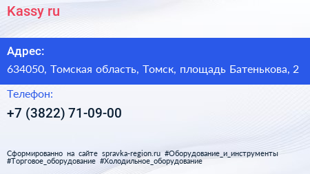 Kassy.ru по адресу 634050, Томская область, Томск, площадь Батенькова, 2 в дальнейшем Организация, размещена в следующих категориях: