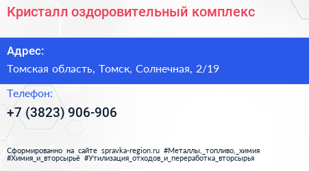 Кристалл, оздоровительный комплекс по адресу Томская область, Томск, Солнечная, 2/19 в дальнейшем Организация, размещена в следующих категориях: