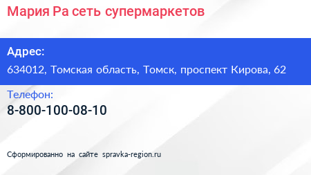 Мария-Ра, сеть супермаркетов по адресу 634012, Томская область, Томск, проспект Кирова, 62 в дальнейшем Организация, размещена в следующих категориях: