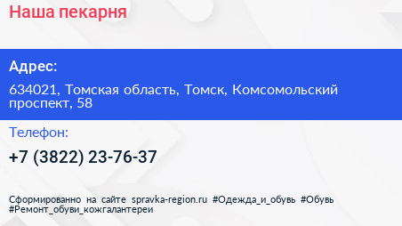 Наша пекарня по адресу 634021, Томская область, Томск, Комсомольский проспект, 58 в дальнейшем Организация, размещена в следующих категориях: