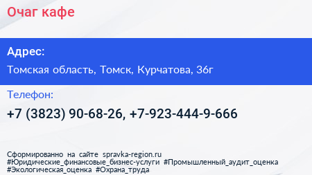 Очаг, кафе по адресу Томская область, Томск, Курчатова, 36г в дальнейшем Организация, размещена в следующих категориях: