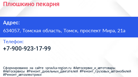 Плюшкино, пекарня по адресу 634057, Томская область, Томск, проспект Мира, 21а в дальнейшем Организация, размещена в следующих категориях: