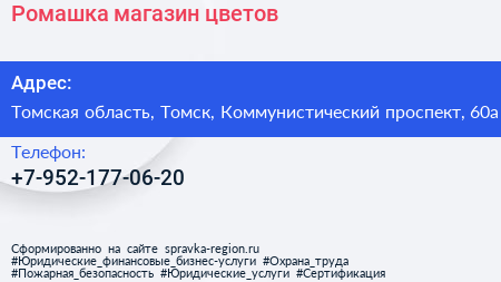 Ромашка, магазин цветов по адресу Томская область, Томск, Коммунистический проспект, 60а в дальнейшем Организация, размещена в следующих категориях: