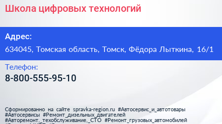 Школа цифровых технологий по адресу 634045, Томская область, Томск, Фёдора Лыткина, 16/1 в дальнейшем Организация, размещена в следующих категориях: