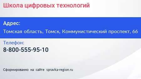 Школа цифровых технологий по адресу Томская область, Томск, Коммунистический проспект, 66 в дальнейшем Организация, размещена в следующих категориях: