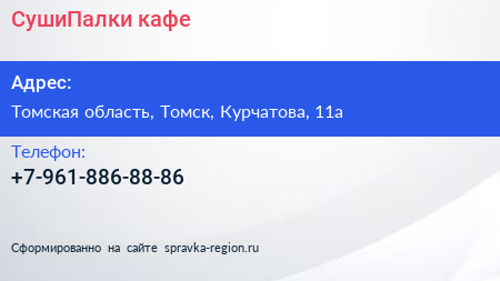 СушиПалки, кафе по адресу Томская область, Томск, Курчатова, 11а в дальнейшем Организация, размещена в следующих категориях: