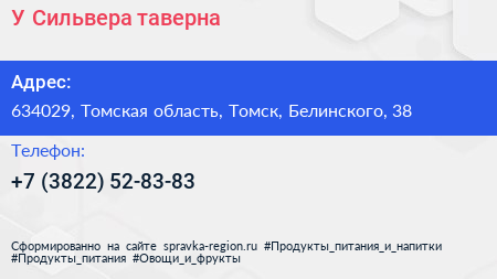 У Сильвера, таверна по адресу 634029, Томская область, Томск, Белинского, 38 в дальнейшем Организация, размещена в следующих категориях: