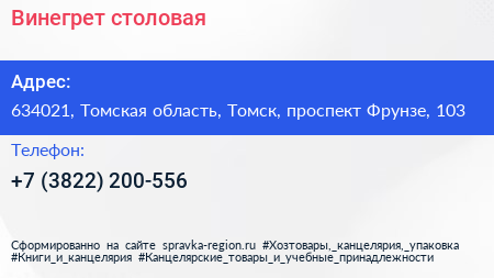 Винегрет, столовая по адресу 634021, Томская область, Томск, проспект Фрунзе, 103 в дальнейшем Организация, размещена в следующих категориях: