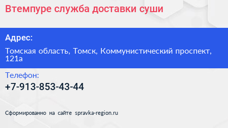 Втемпуре, служба доставки суши по адресу Томская область, Томск, Коммунистический проспект, 121а в дальнейшем Организация, размещена в следующих категориях: