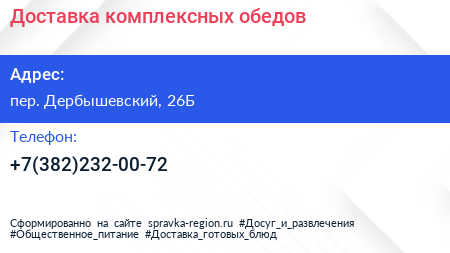 Доставка комплексных обедов по адресу пер. Дербышевский, 26Б в дальнейшем Организация, размещена в следующих категориях: