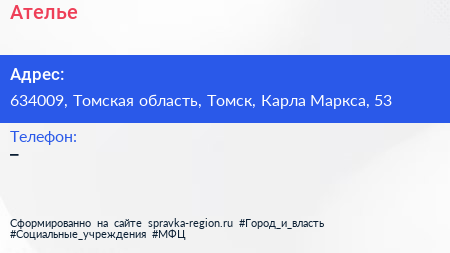 Ателье по адресу 634009, Томская область, Томск, Карла Маркса, 53 в дальнейшем Организация, размещена в следующих категориях: