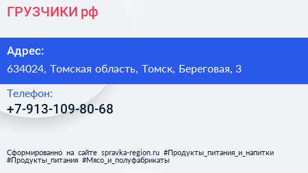 ГРУЗЧИКИ.рф по адресу 634024, Томская область, Томск, Береговая, 3 в дальнейшем Организация, размещена в следующих категориях: