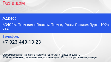 Газ в дом по адресу 634026, Томская область, Томск, Розы Люксембург, 102а ст2 в дальнейшем Организация, размещена в следующих категориях: