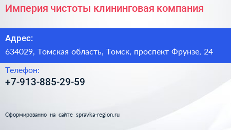 Империя чистоты, клининговая компания по адресу 634029, Томская область, Томск, проспект Фрунзе, 24 в дальнейшем Организация, размещена в следующих категориях: