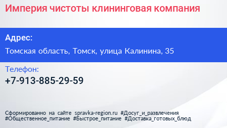 Империя чистоты, клининговая компания по адресу Томская область, Томск, улица Калинина, 35 в дальнейшем Организация, размещена в следующих категориях:
