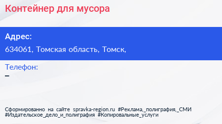 Контейнер для мусора по адресу 634061, Томская область, Томск, в дальнейшем Организация, размещена в следующих категориях: