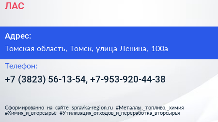 ЛАС по адресу Томская область, Томск, улица Ленина, 100а в дальнейшем Организация, размещена в следующих категориях: