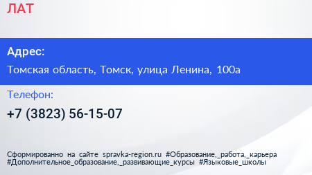 ЛАТ по адресу Томская область, Томск, улица Ленина, 100а в дальнейшем Организация, размещена в следующих категориях: