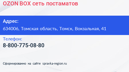 OZON BOX, сеть постаматов по адресу 634006, Томская область, Томск, Вокзальная, 41 в дальнейшем Организация, размещена в следующих категориях: