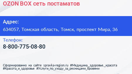 OZON BOX, сеть постаматов по адресу 634057, Томская область, Томск, проспект Мира, 36 в дальнейшем Организация, размещена в следующих категориях: