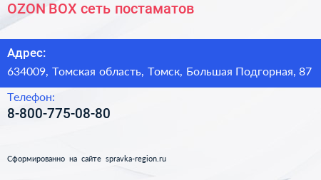 OZON BOX, сеть постаматов по адресу 634009, Томская область, Томск, Большая Подгорная, 87 в дальнейшем Организация, размещена в следующих категориях: