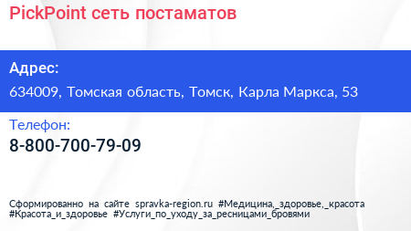 PickPoint, сеть постаматов по адресу 634009, Томская область, Томск, Карла Маркса, 53 в дальнейшем Организация, размещена в следующих категориях: