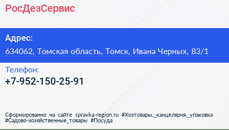 РосДезСервис по адресу 634062, Томская область, Томск, Ивана Черных, 83/1 в дальнейшем Организация, размещена в следующих категориях: