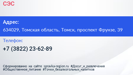 СЭС по адресу 634029, Томская область, Томск, проспект Фрунзе, 39 в дальнейшем Организация, размещена в следующих категориях: