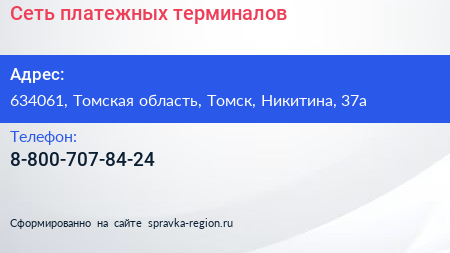 Сеть платежных терминалов по адресу 634061, Томская область, Томск, Никитина, 37а в дальнейшем Организация, размещена в следующих категориях: