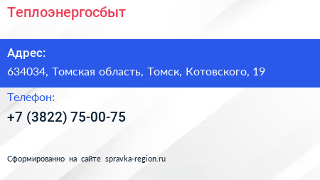Теплоэнергосбыт по адресу 634034, Томская область, Томск, Котовского, 19 в дальнейшем Организация, размещена в следующих категориях: