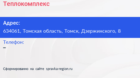 Теплокомплекс по адресу 634061, Томская область, Томск, Дзержинского, 8 в дальнейшем Организация, размещена в следующих категориях:
