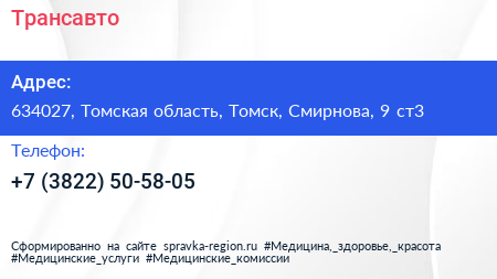 Трансавто по адресу 634027, Томская область, Томск, Смирнова, 9 ст3 в дальнейшем Организация, размещена в следующих категориях: