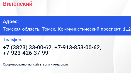 Виленский по адресу Томская область, Томск, Коммунистический проспект, 112 в дальнейшем Организация, размещена в следующих категориях: