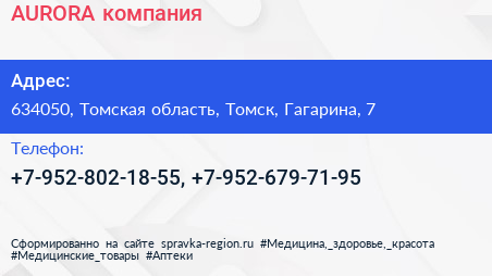 AURORA, компания по адресу 634050, Томская область, Томск, Гагарина, 7 в дальнейшем Организация, размещена в следующих категориях: