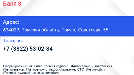 Баня №3 по адресу 634029, Томская область, Томск, Советская, 55 в дальнейшем Организация, размещена в следующих категориях:
